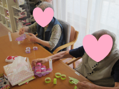 ぶどうの実の輪っか作りに皆様苦戦しておられ、『むずかしいね~』