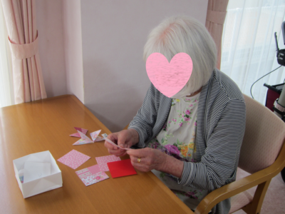 利用者様の傍らに職員が付き、すこし助け船を出しながら可愛い